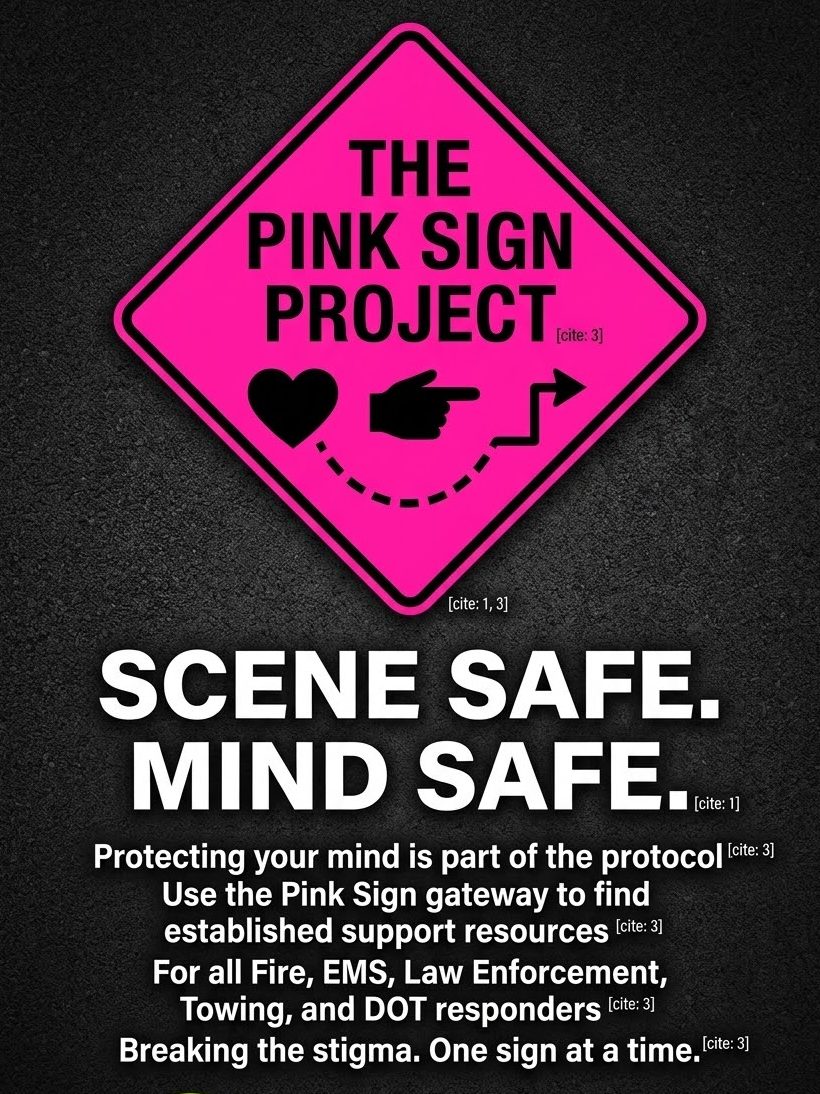 TIM Heroes, Inc. is proud to announce the initial development of The Pink Sign Project, our newest initiative dedicated entirely to responder mental survival. Using the universal visual language of the MUTCD fluorescent pink warning signs, this campaign aims to bypass clinical stigma and provide an "advanced warning" system to connect all roadway responders with established mental health resources. Keep an eye out as we roll out new graphics and breakroom materials.